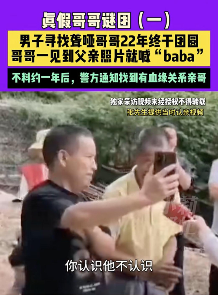 张先生告诉小莉,自己有一个聋哑哥哥,2002年在山西打工的时候不慎走失,期间全家人一直在寻找。2024年6月志愿者说在南阳有一个很像哥哥的聋哑人,对方一见到父亲的照片就喊“baba”,于是在各方见证下,家人没有做DNA就认了亲。“我哥对我很好,有啥好吃的他都让我吃。”